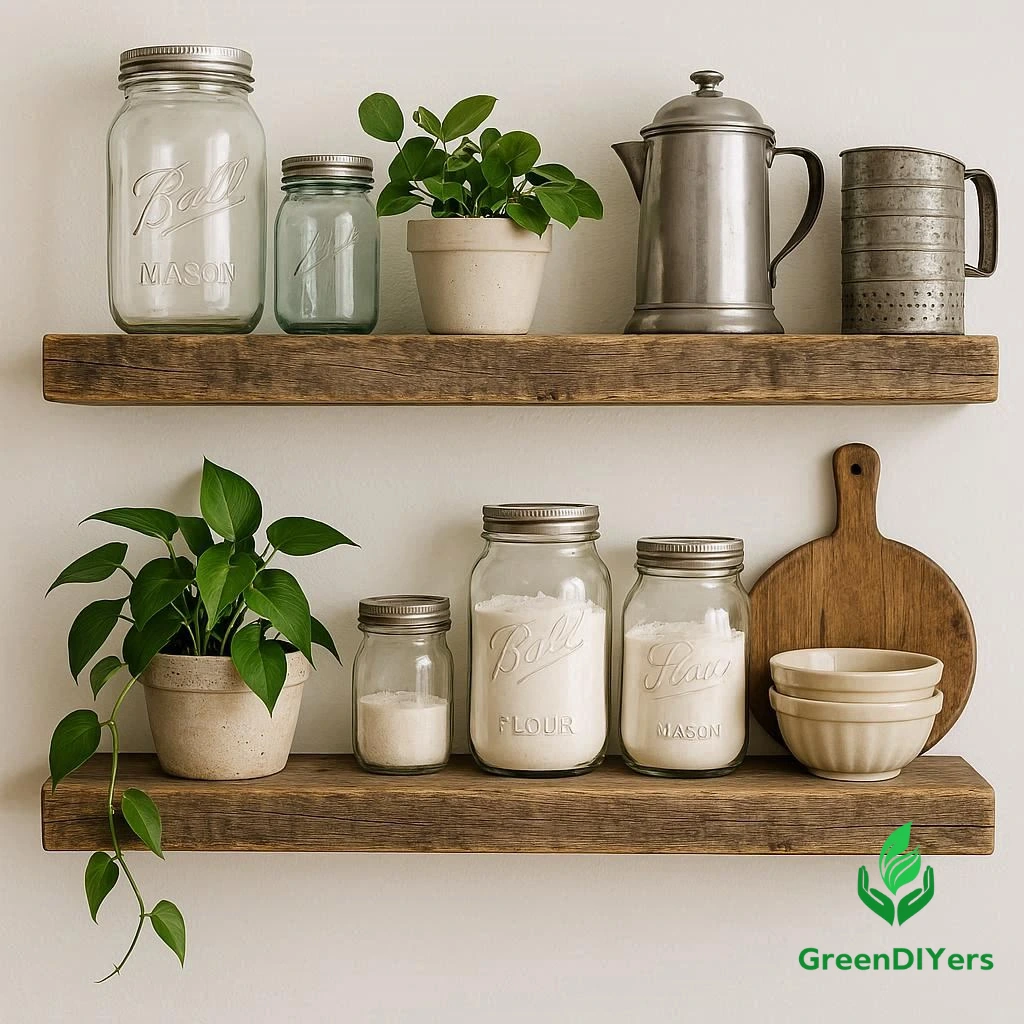 Consider your room’s function when styling. Kitchen DIY floating shelves might showcase beautiful dishware and cooking essentials, while living room shelves could display books, plants, and personal treasures.